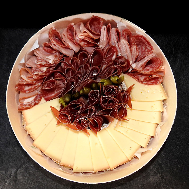 - + En Option : Un assortiment de charcuterie de qualité pouvant contenir : jambon blanc, jambon de Serrano, Rosette, Bacon, Coppa, Chorizo (selon stock disponible).